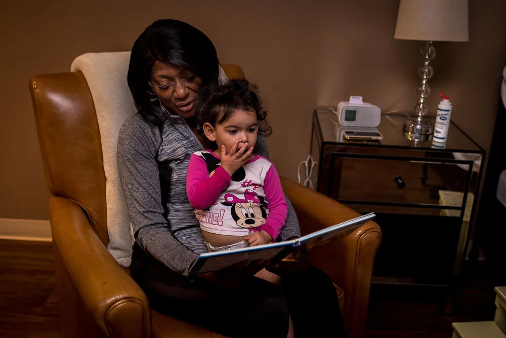 A few minutes after I arrived, Karon’s mom came up to help with Amora. They spent some time reading books in the corner, both of them peeking over their book to see how Merranda was doing every few minutes.