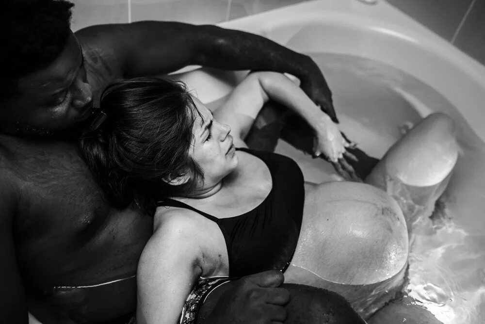 Merranda radiated pure strength and peace as she breathed through each contraction. She sank into Karon’s supportive arms between contractions and let her body do its hard work. A small essential oil diffuser in the corner put a heavenly scent in the air. Karon shifted around to hold her in whatever position that felt right to her, whispering words of encouragement and holding her belly.