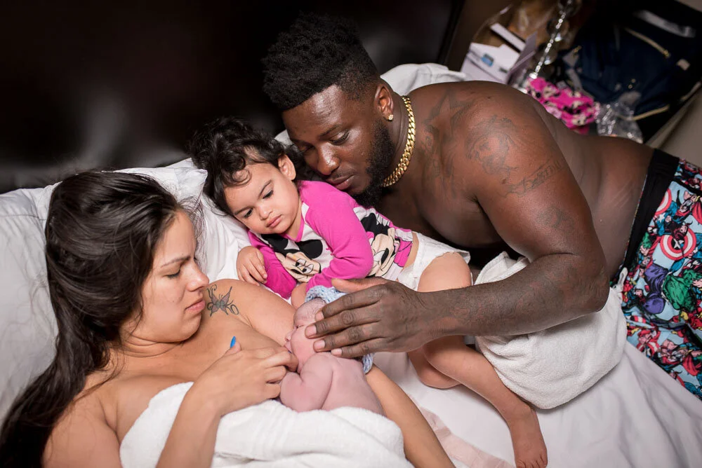 When people think about birth these days, they mostly think about a mom and her partner, in a hospital with doctors and nurses. People rarely think about it as a family event. But some couples, like Merranda and Karon, choose to shake off all stereotypes about birth and embrace it for what it can be: a natural, beautiful, and transformative process, one that can be centered on family and love. It was so special to see how they involved their daughter and Karon’s mom in this fast, middle-of-the-night birth of their son!