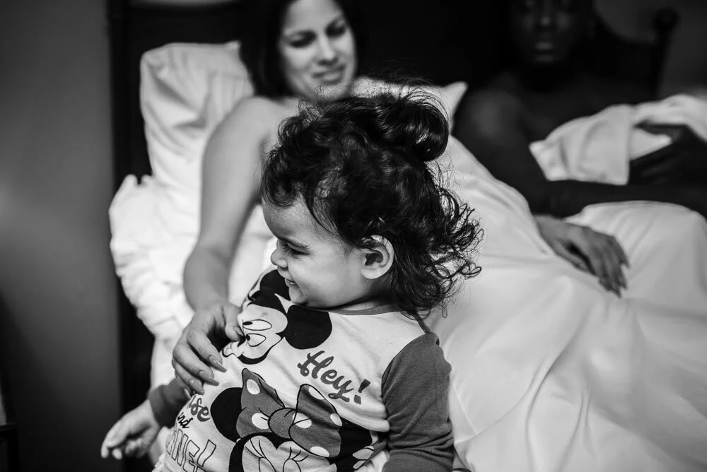 Completely enthralled in everything that was happening, Amora snuggled into bed with her parents to meet her baby brother.