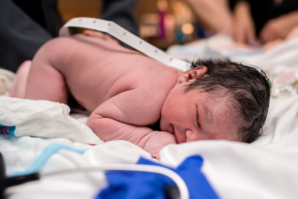 After Kash had gotten a good snuggle with his mama and breastfed for a while, Ashley carried him over to be weighed. This perfect little guy weighed in at 8.8 pounds!