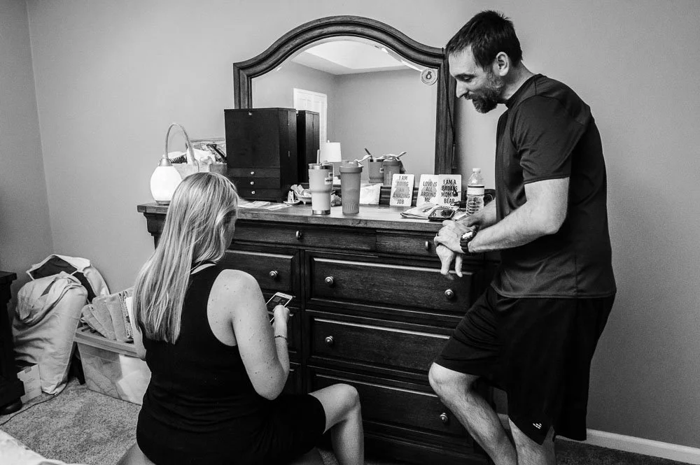 I quietly came in through the front door and walked into their master bedroom, her birth space. The tub was getting filled, twinkle lights glowed on the wall, and Nicole was clearly in transition. I hoped the midwives would get there in time because it was clear there was going to be a baby in the room soon!